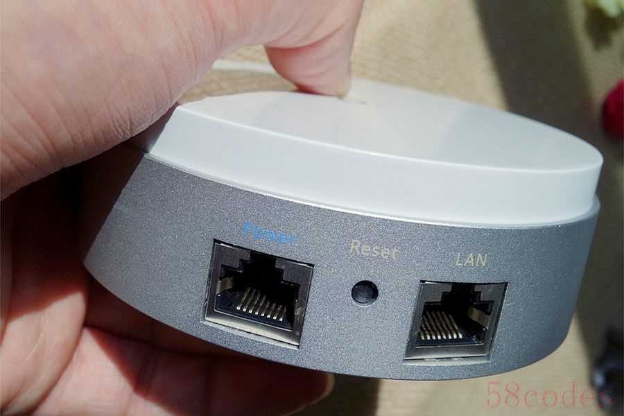 笔者拿在手里正好,无论大小还是重量。接口均设置在圆周上,此侧中间为Reset键,两边分别为Power接口及LAN接口,很协调的设计,是不是出自一个追求完美的设计师之手呢?Power接口上的蓝色字体则提醒我们要接蓝色的水晶头,这点很重要。一个LAN接口,怎么说呢?对于笔者家里用是足够了,这个都得闲置,但对于家里有两台及以上台式机的用户来说就显得不够用了。