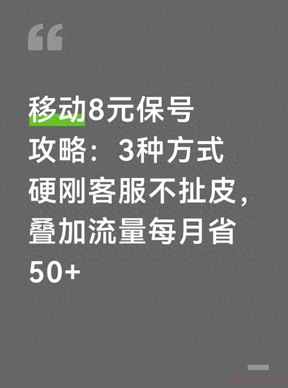 以下是一份关于移动8元保号攻略,包含3种方式硬刚客服不扯皮,叠加流量每月省50的详细说明: