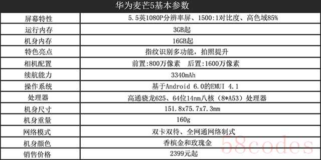 惯例!我们现在总的看下麦芒5的基本参数配置。主要有两个版本,标配版和高配版,价格相差200元,最主要的差别是运行内存和存储容量。标配版是3GB+32GB的组合,而高配版是4GB+64GB组合。