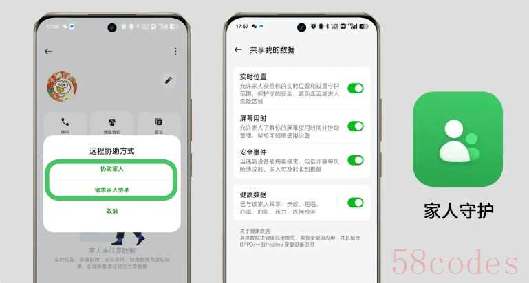 一加手机的远程控制功能APP经过“代际变迁”,从Color OS 6时叫【远程守护】,到Color OS 12时叫【家庭空间】,现在更名为【家人守护】。升级为【家人守护】后,一加手机更加合适与家中的长辈进行互联协助,经过拨打电话一样的操作就能直接操作家人的手机,远程轻松解决问题。