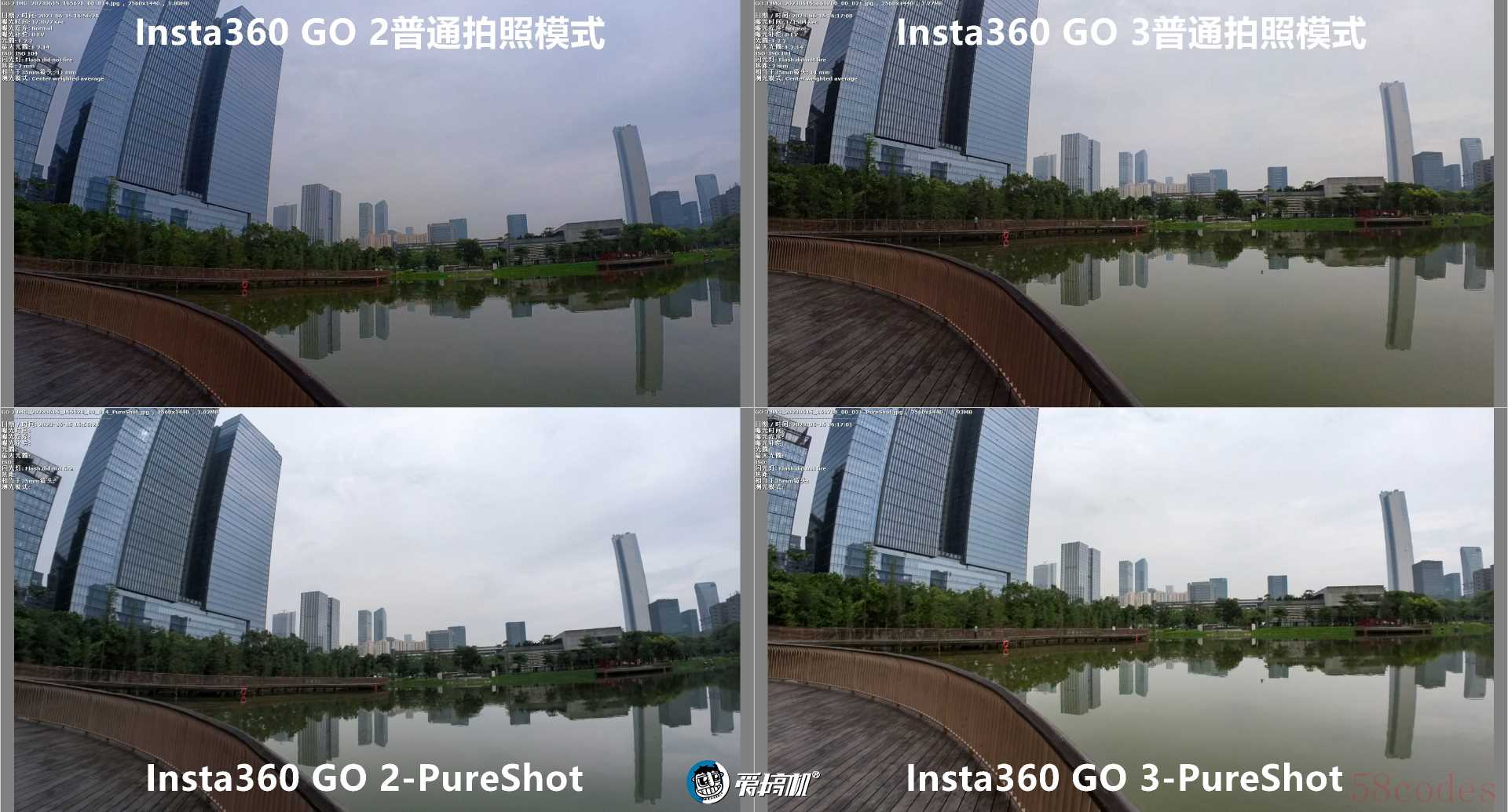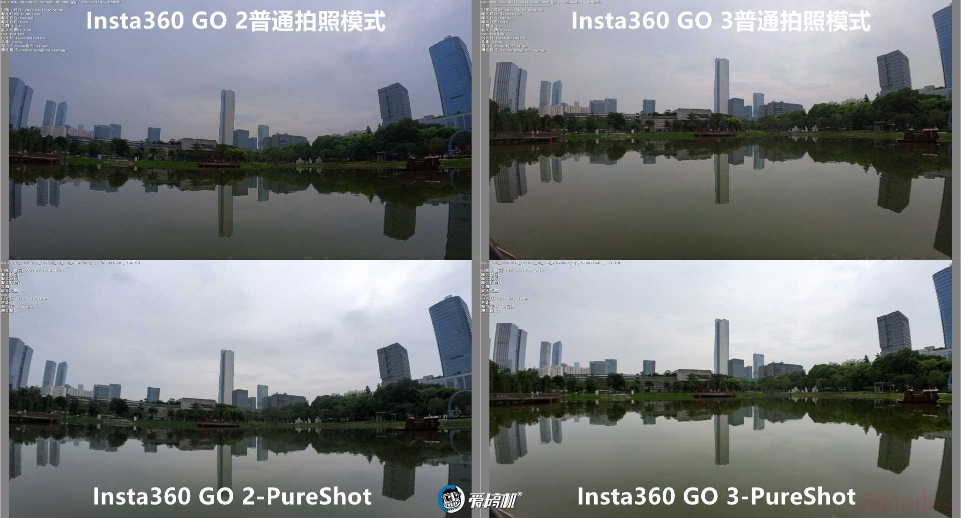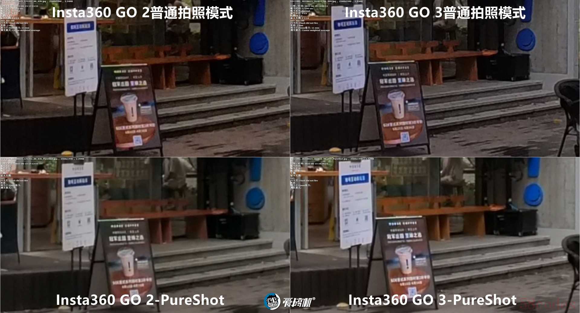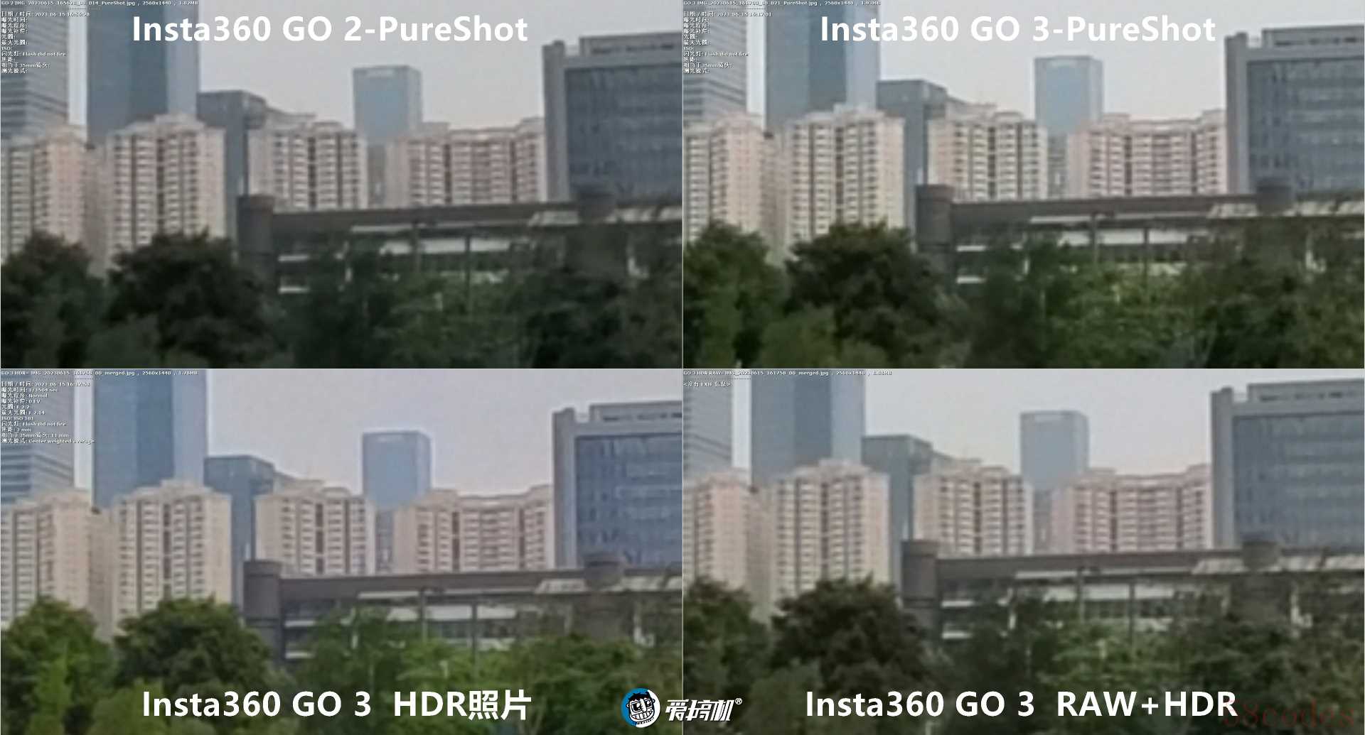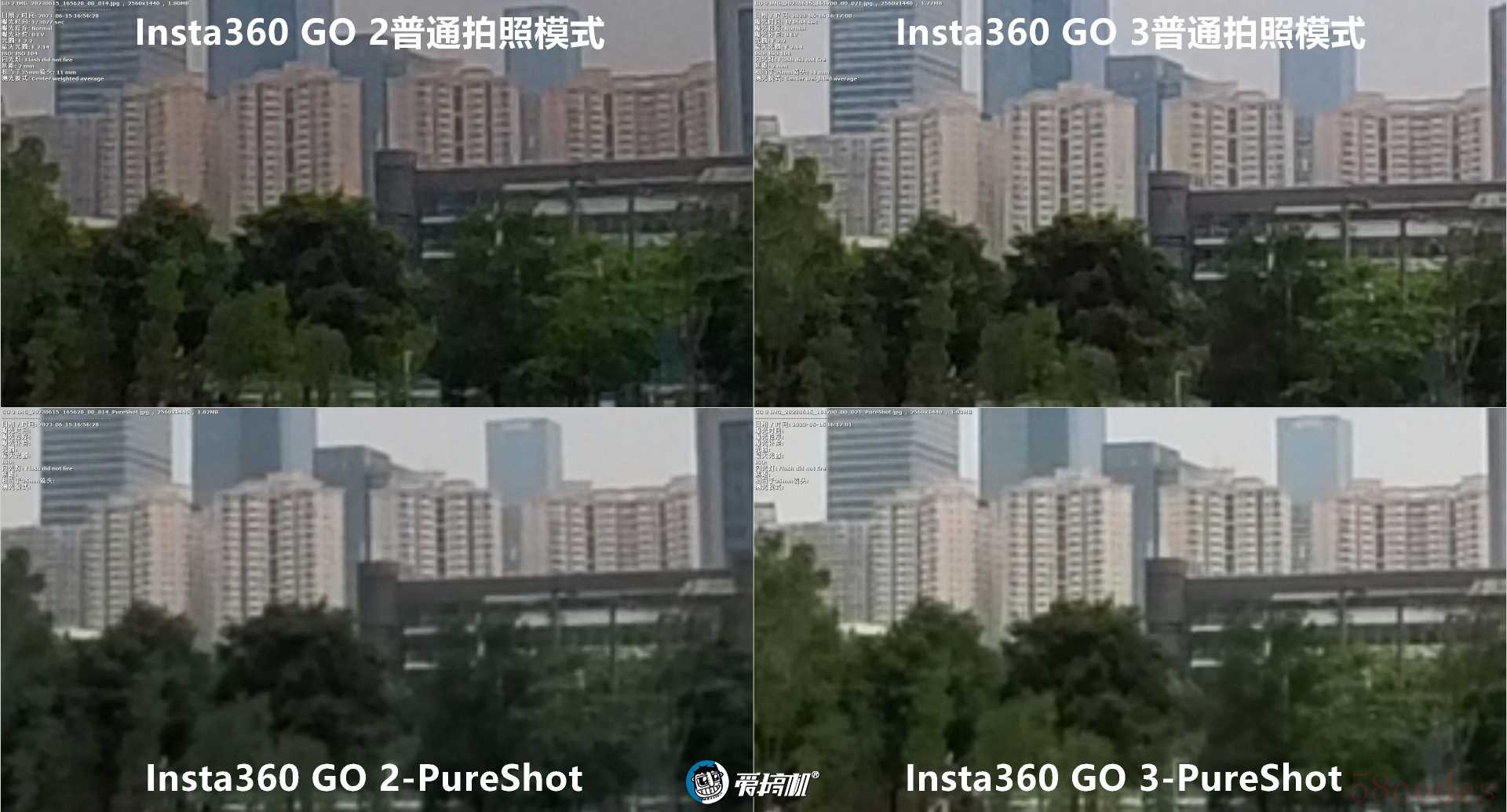 普通与PureShot模式下,GO 2与GO 3,全局与中央500%放大4
