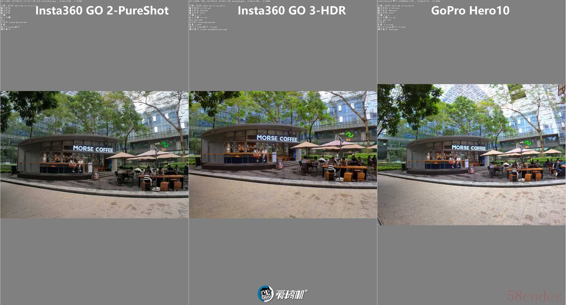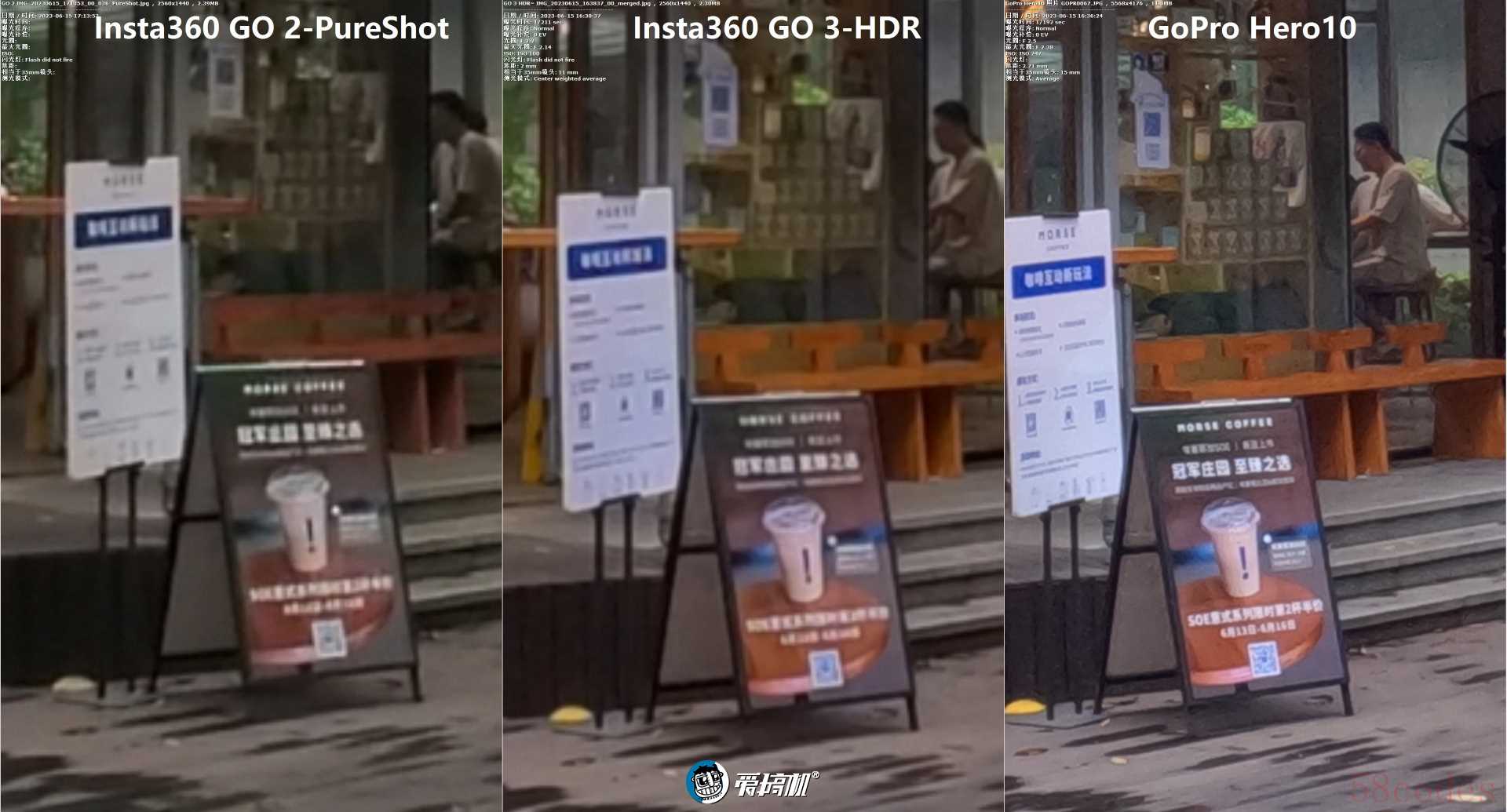 GO 3的算法更强,白平衡、测光、暗部亮度、动态范围(不会像前代那样暗部黑成一片)、降噪、偏弱光场景全都有明显进步,成片风格要阳间和讨好眼球很多很多,虽然现固件貌似边缘紫边控制要弱一些。普通拍照模式默认选PureShot即可。HDR拍照时,用insp模式即可(色彩饱和度高点),RAW+HDR提升极为有限,且可能会帮倒忙。而Hero 10照片是5568x4176=2325万像素,对比GO系列16:9照片的2560x1400=369万像素(最高可选2560*2560=655万像素 ),白天辨析力完全没可比性。当然,它们的体型和用途也没有可比性。