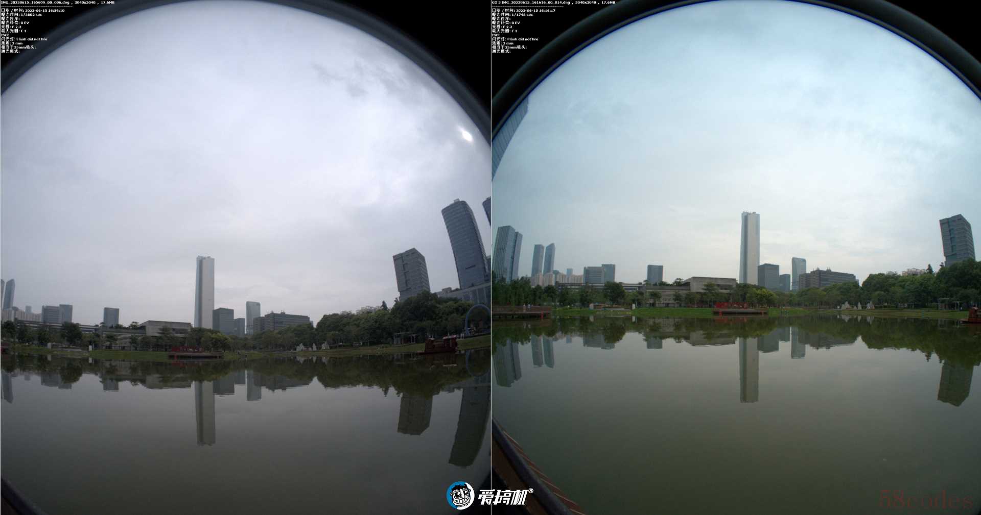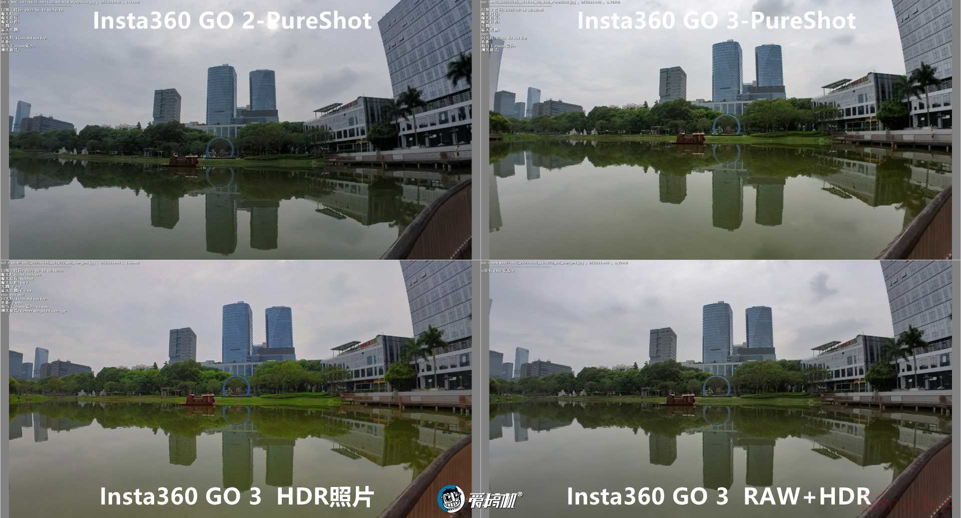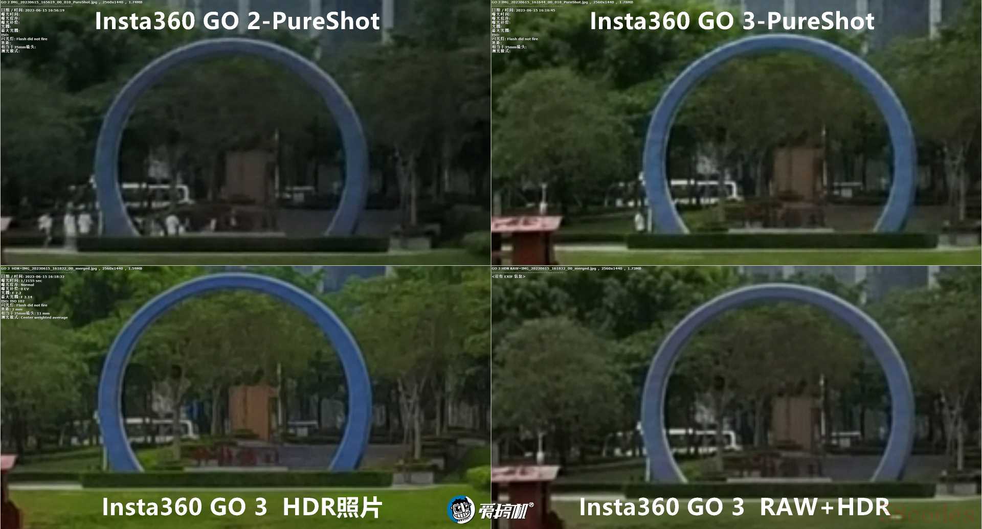 Insta360 GO 2与影石GO 3实际输出的圆形鱼眼照片↑