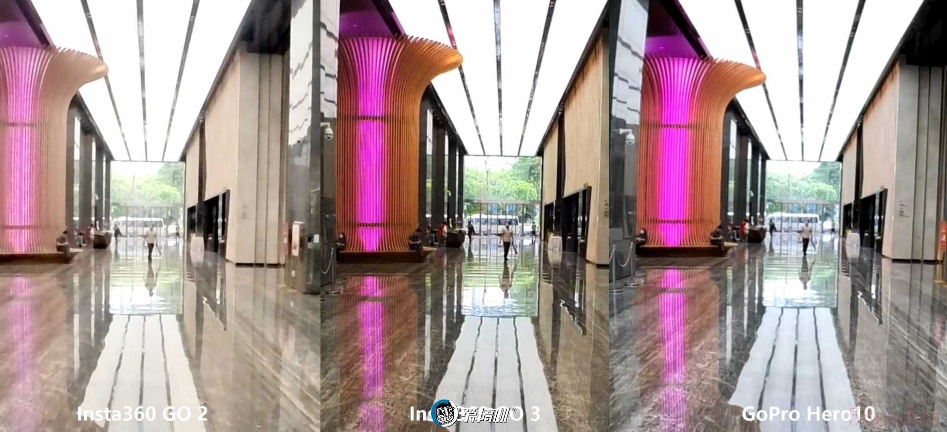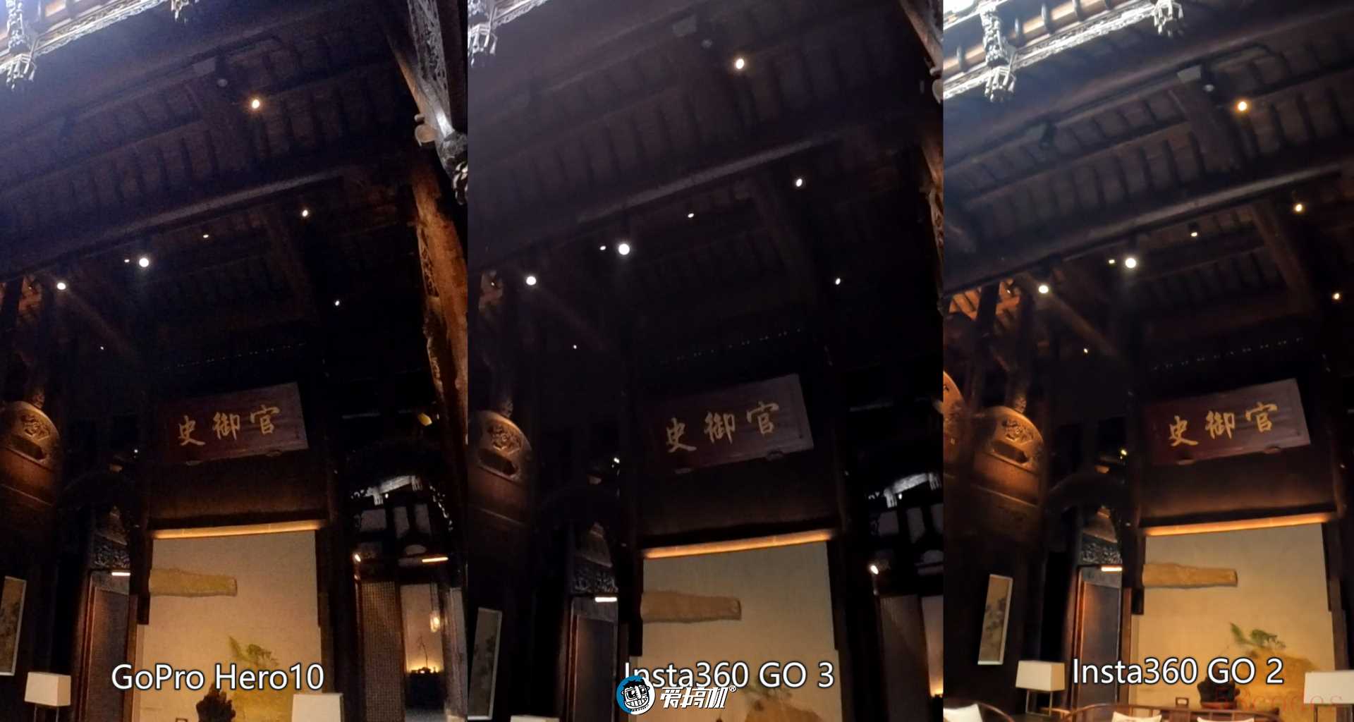 GoPro Hero10的5.3K模式,对战Insta360 GO 2/GO 3的2.7K输出白天室内光线偏暗场景(和接近于室内强灯光),小像素的GoPro Hero10细节就崩塌得很明显,都快被Insta360 GO兄弟追上了。