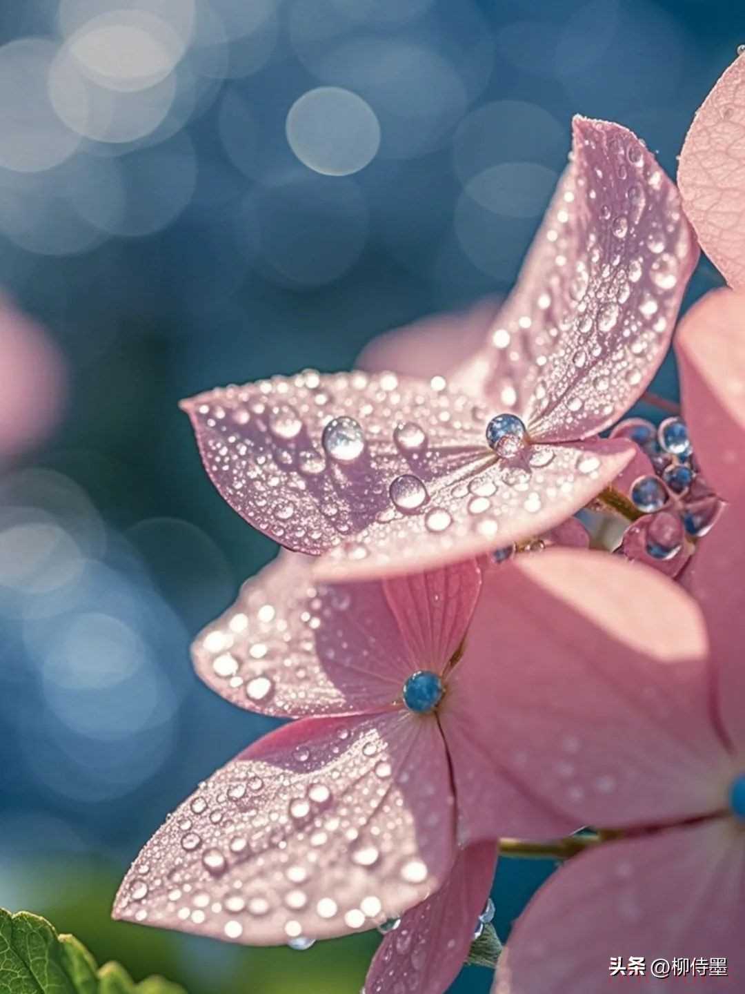 除此之外,如果你再仔细瞅一瞅,还能发现,大一些的水珠里,还会有“影像反射”。