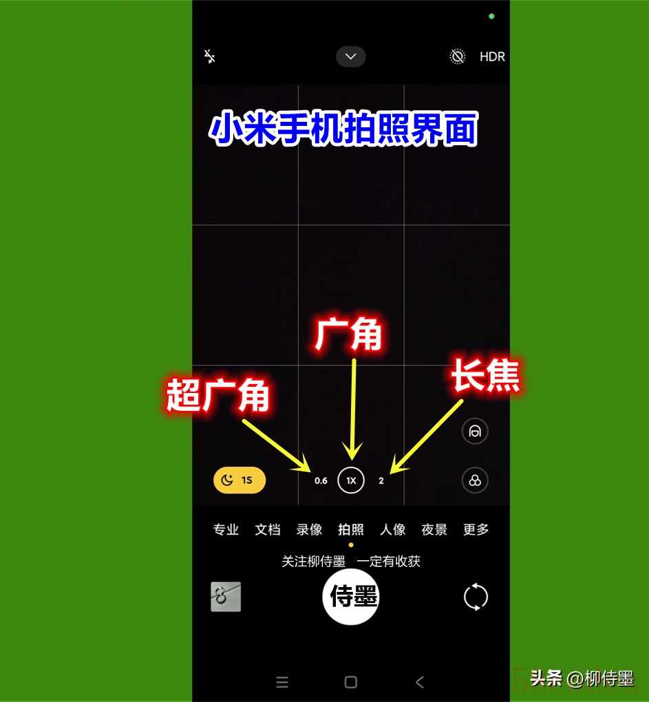 打开手机的拍照界面,你会发现,有人像模式,拍照模式,夜景模式……等等。拍照模式的上面,还标有焦距。如图所示,在小米手机的拍照界面中,0.6x是超广角,1x是广角,2x是长焦。那么,手机的微距功能,在哪里呢?