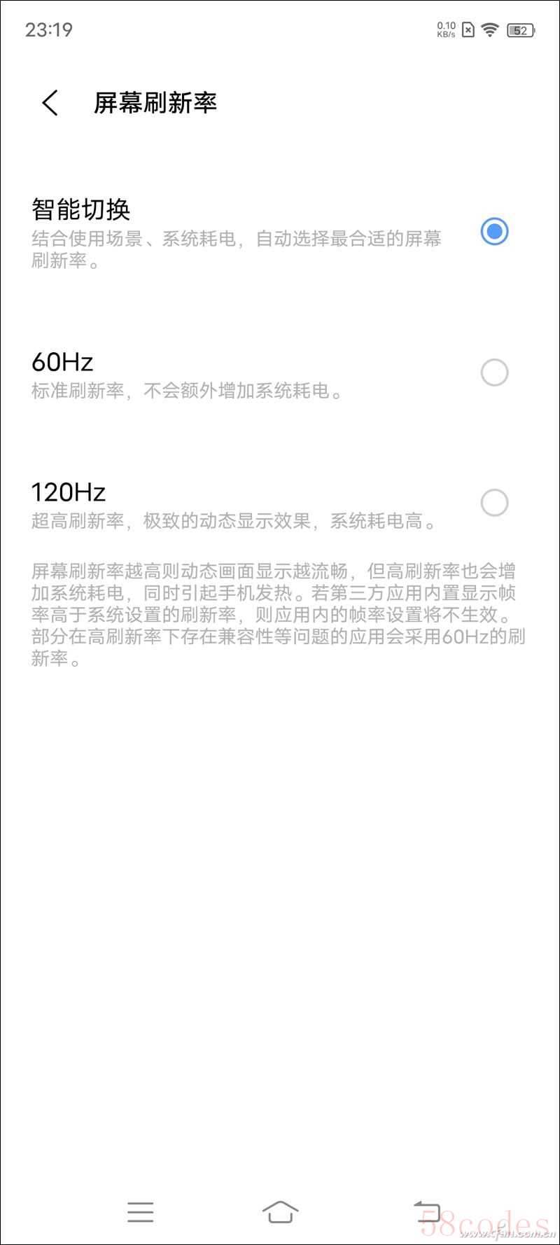 手机屏幕的标准分辨率为60Hz,一些中高端手机则开始支持90Hz~144Hz的刷新率。刷新率越高,画面显示越流畅,但相应会增加耗电量。平时建议大家将刷新率设定在“智能切换”,待电量低时再手动切换到60Hz模式以节省电力。