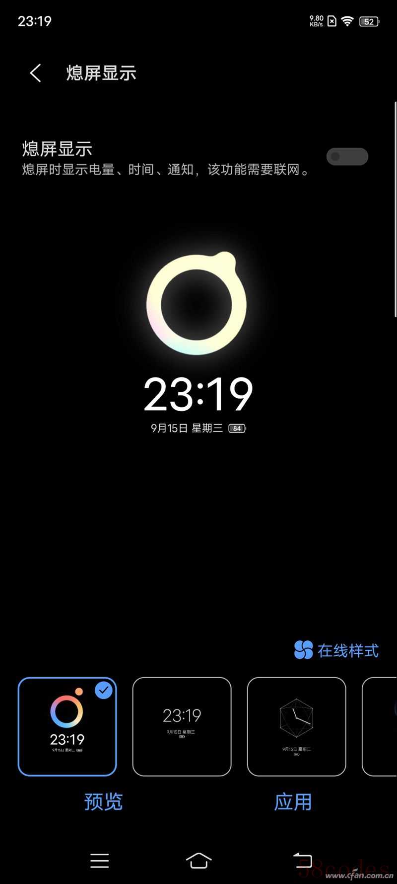 开启息屏显示后,我们无需点亮整块屏幕就能看到时间和通知等信息,非常便利。但是,只有OLED屏幕对息屏显示功能的耗电量极小,而LCD屏幕在使用该功能时则会显著增加耗电量,对续航影响较大,电量低时要记得关闭。