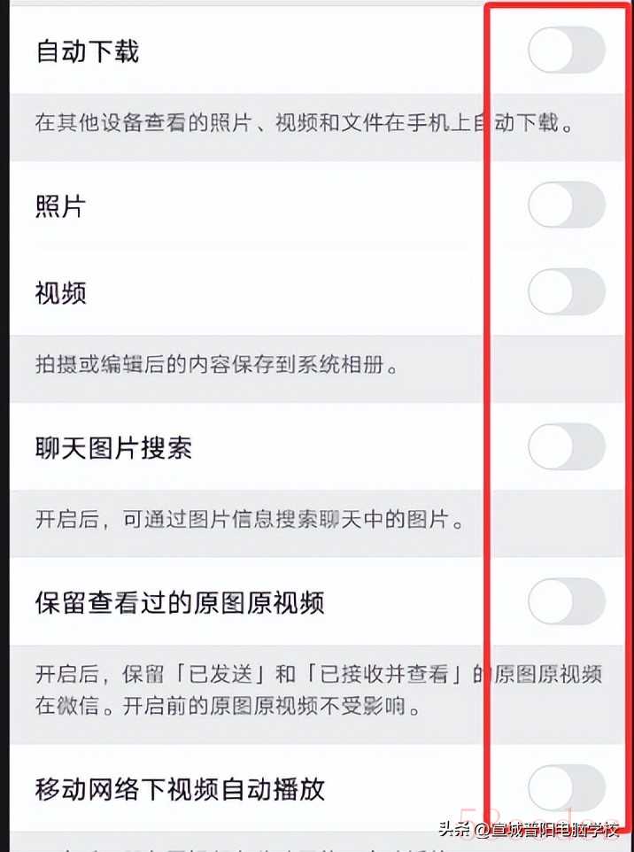 第四就是微信清理 微信可以说是占据手机内存最大的,微信里面有几个开关默认情况下是开启的,平时我们聊天刷朋友圈浏览图片、视频都会自动下载到手机上,这些都会占据我们手机很大的内存。我们就需要打开微信,点击右下角“我”,再点击“设置”