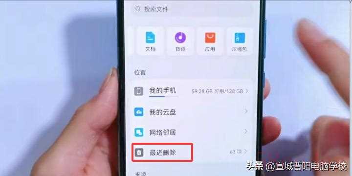 找到“压缩包”直接点进去,把不要的“压缩包”清理掉。再返回把“最近删除”文件清理掉