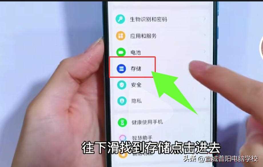 2. "向下滚动并找到“存储”或“存储和USB”。"