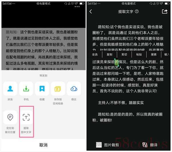 如果在手机中找不到这个功能的话我们也可以用QQ的文字识别功能来提取,特别方便!