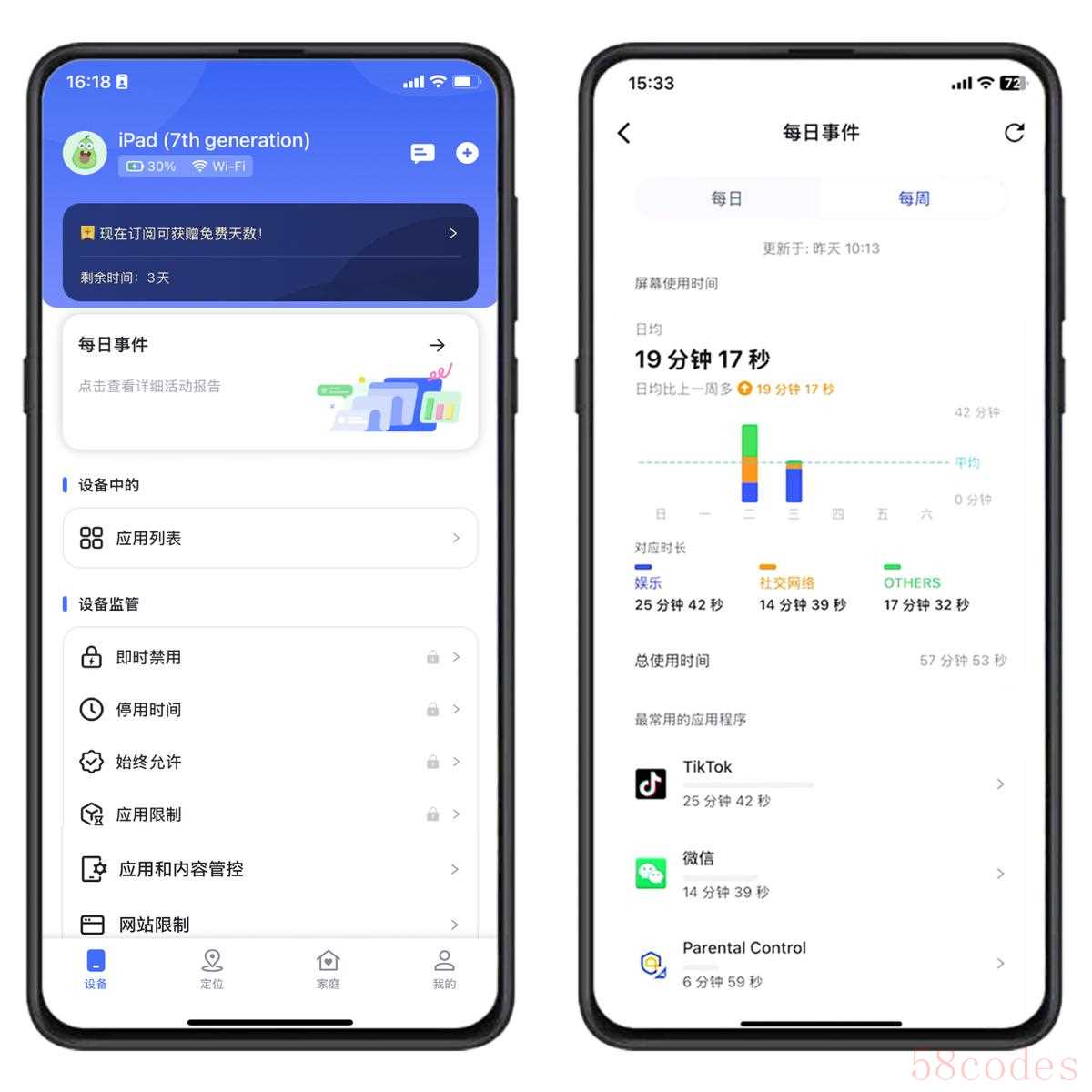 【每日事件】功能主要用于查看被控iPhone(或iPad)每天使用APP的时长、频繁使用哪些APP。