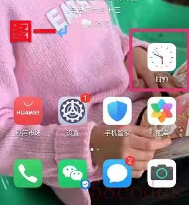 1. 打开手机上的 "“闹钟” (Alarm) 应用"。