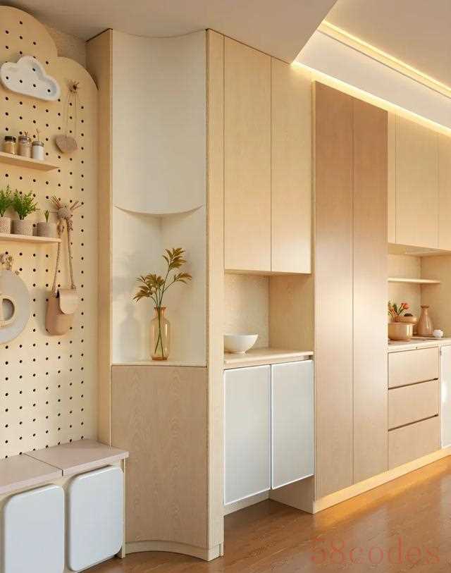 ③ 配色别贪心,柜体选纯白或木色,门板做局部镂空,内置感应灯带,夜里进门一抹柔光,氛围直接拉满,还能提醒“鞋没归位”。