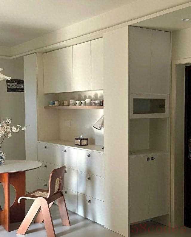 "做法:" 如果条件允许(比如老房改造或新装),可以在门框两侧或进门后的墙面预埋嵌入式鞋柜、衣帽柜。门板可以做成与墙面同色,或者选择简洁的款式,视觉上非常整洁。