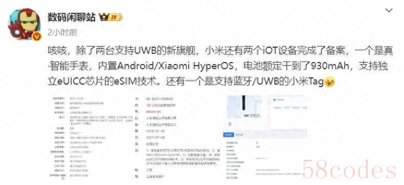 对于小米的后续新品,其中小米 17 Ultra 及其卫星通讯版已于近两个月完成入网认证,全系支持 UWB 超宽带 + 100W 闪充,有望年底发布。与此同时,博主@数码闲聊站 今日确认,小米即将发布的新品还包括两款设备,一个是搭载 Android / Xiaomi HyperOS 的真・智能手表,内置电池 930mAh(额定值),支持独立 eUICC 芯片的 eSIM 技术。另外一款则是支持蓝牙 / UWB 的小米 Tag 定位追踪器。