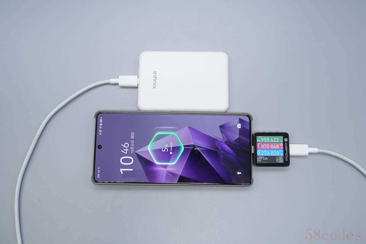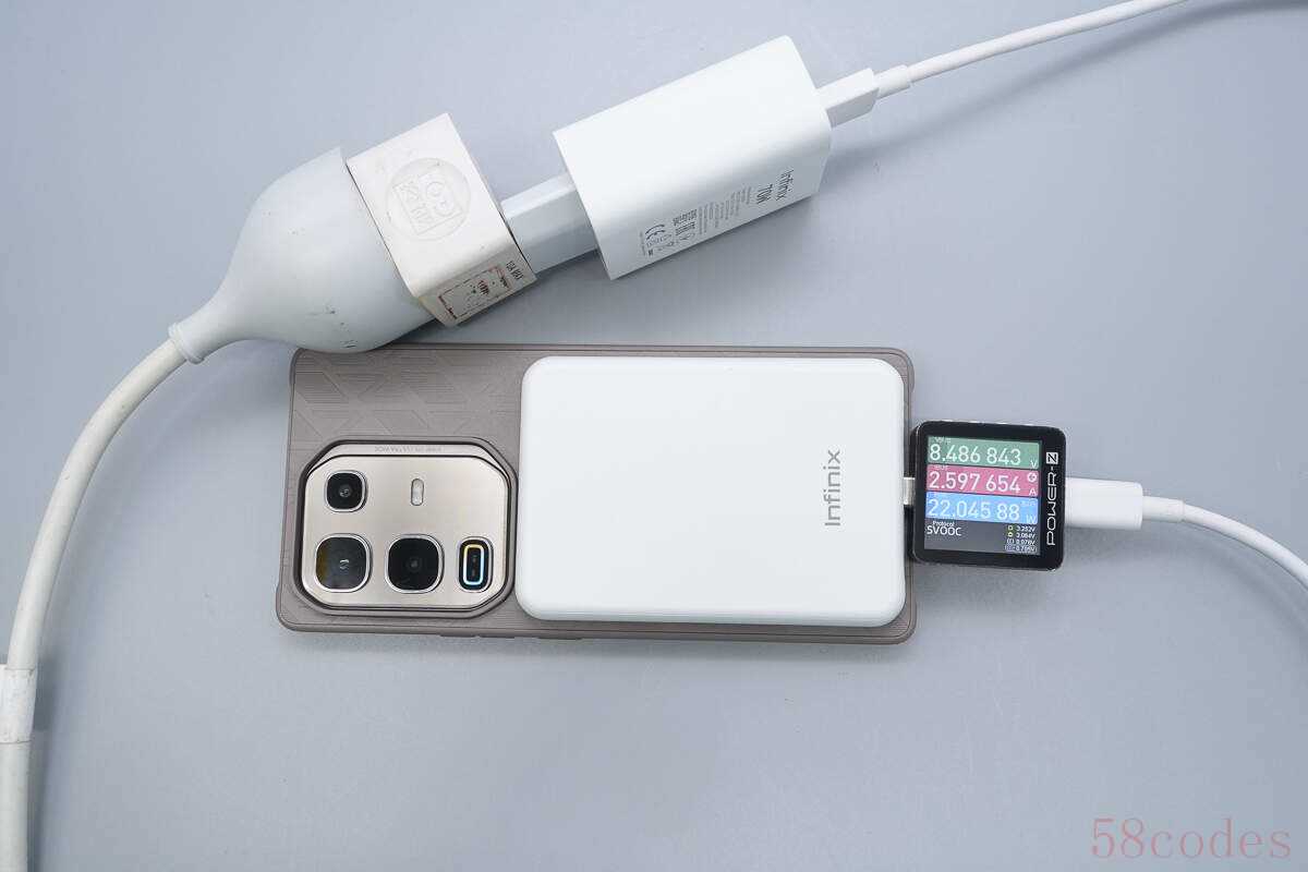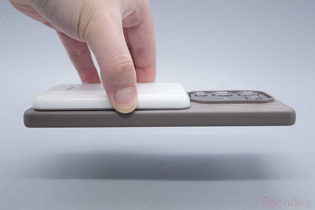 充电宝同样可适配Infinix NOTE 50 Pro,给手机进行无线充电不会挡住后摄模组。