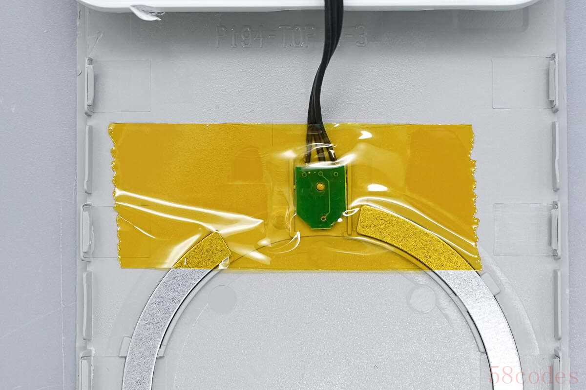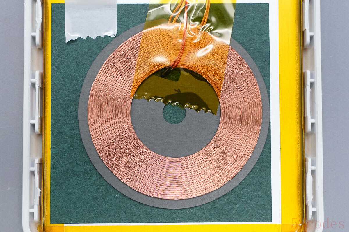 无线充电线圈上也设有热敏电阻,底部贴有青稞绝缘纸实现与电芯隔离。
