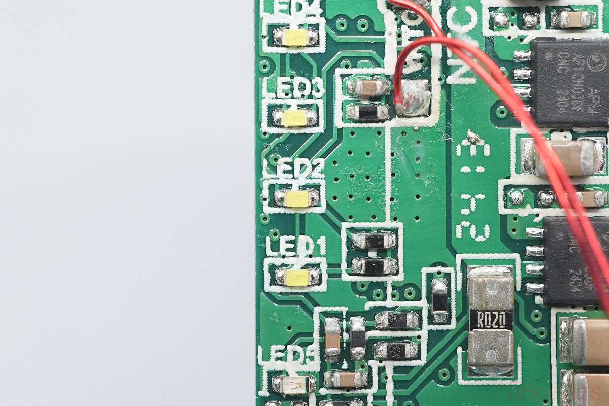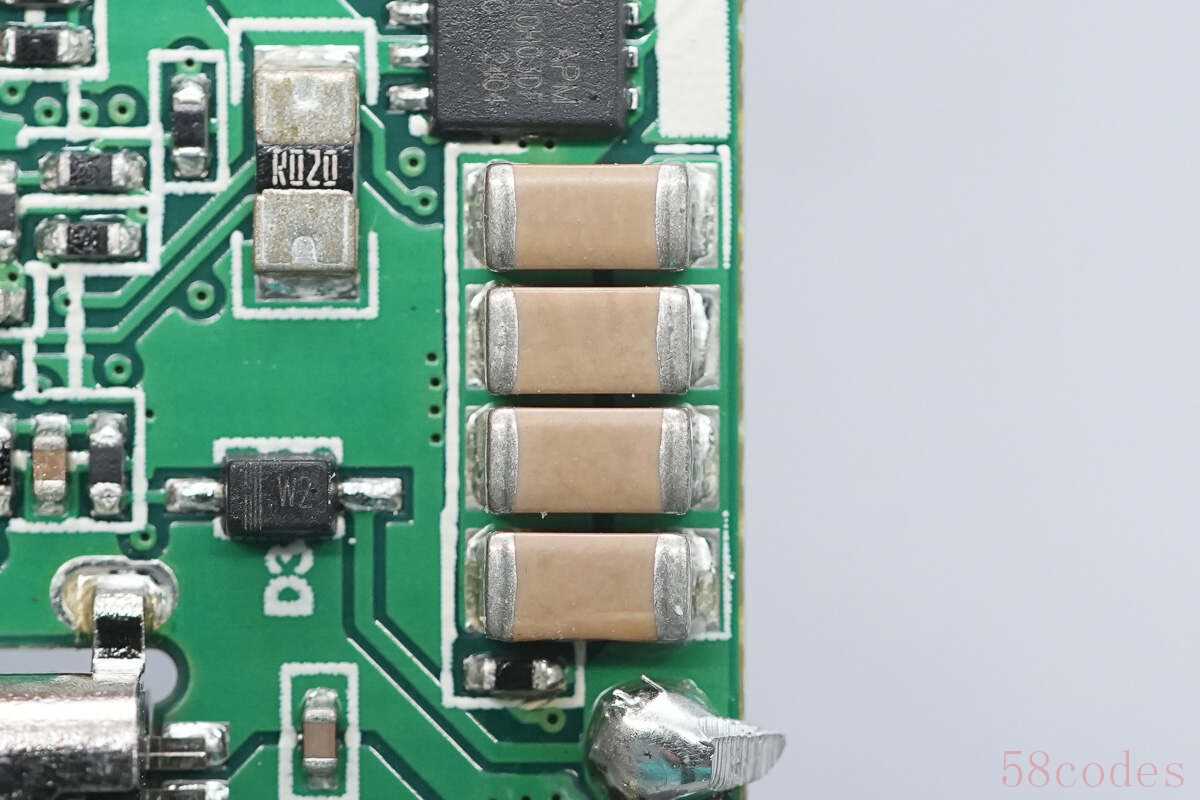 PCB板正面设有锂电保护芯片、移动电源主控芯片、电感、VBUS开关管、无线充电管以及NPO谐振电容。