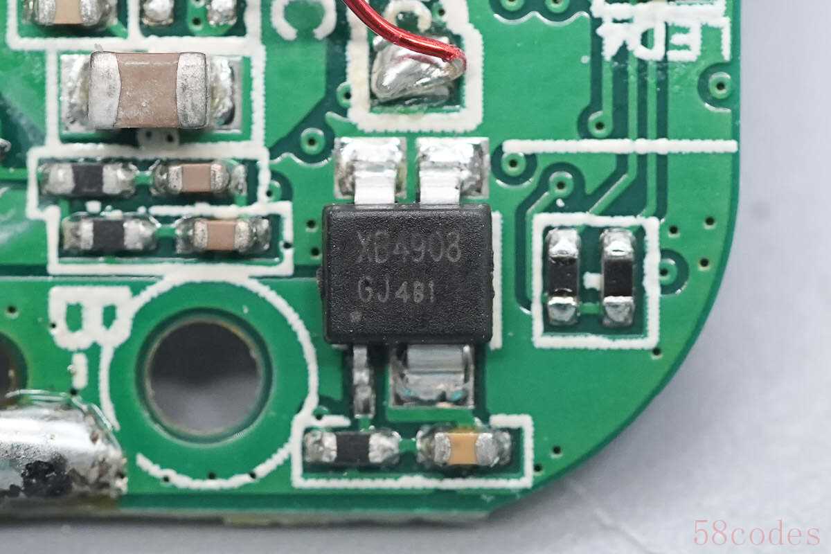 电池保护芯片采用XySemi赛芯微XB4908,用于电池的过充,过放和过流保护。