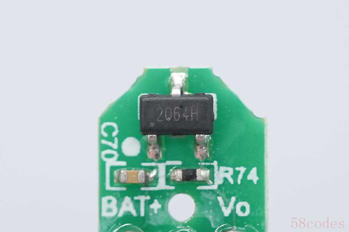 小板另一面设有一颗丝印2604H的霍尔元件。
