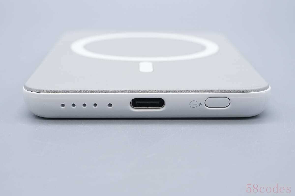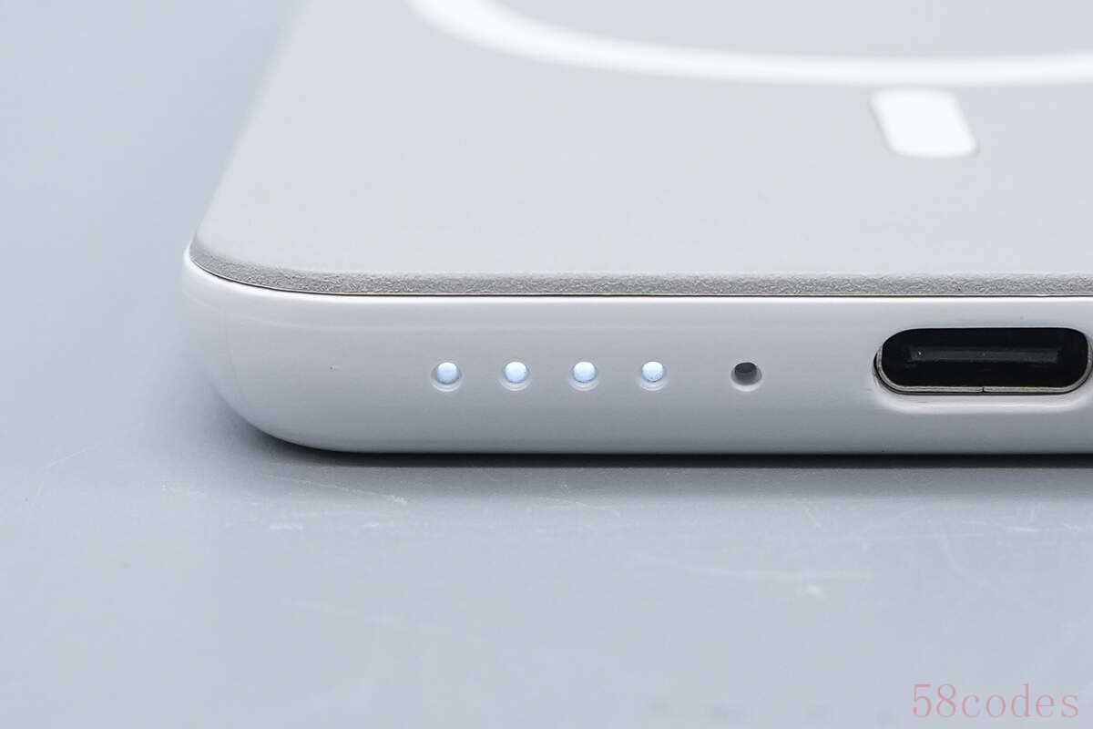 底部配置电源键、USB-C接口、电量指示灯以及无线充电指示灯。