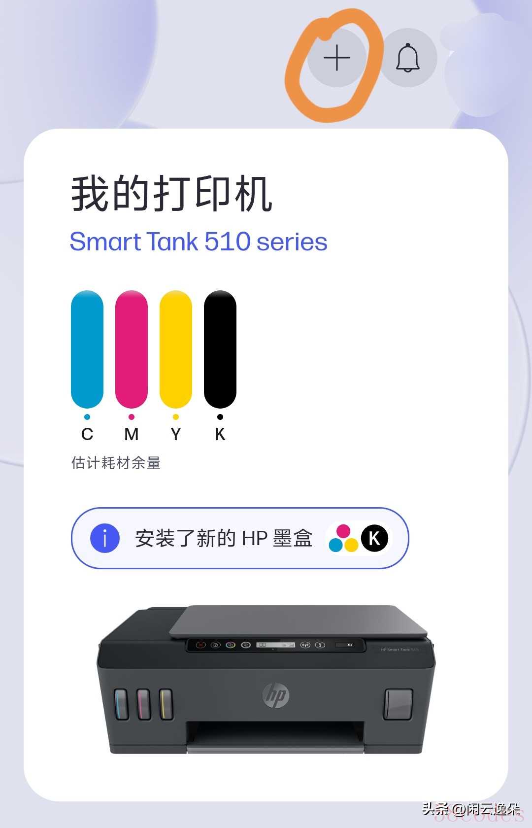 进入惠普APP后,右上角点“ + ”添加新的打印机