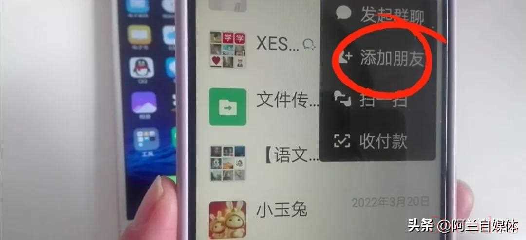 那我们要怎么做呢?我们首先打开微信,点开右上角的加号,注意看下方有一个“添加朋友”!