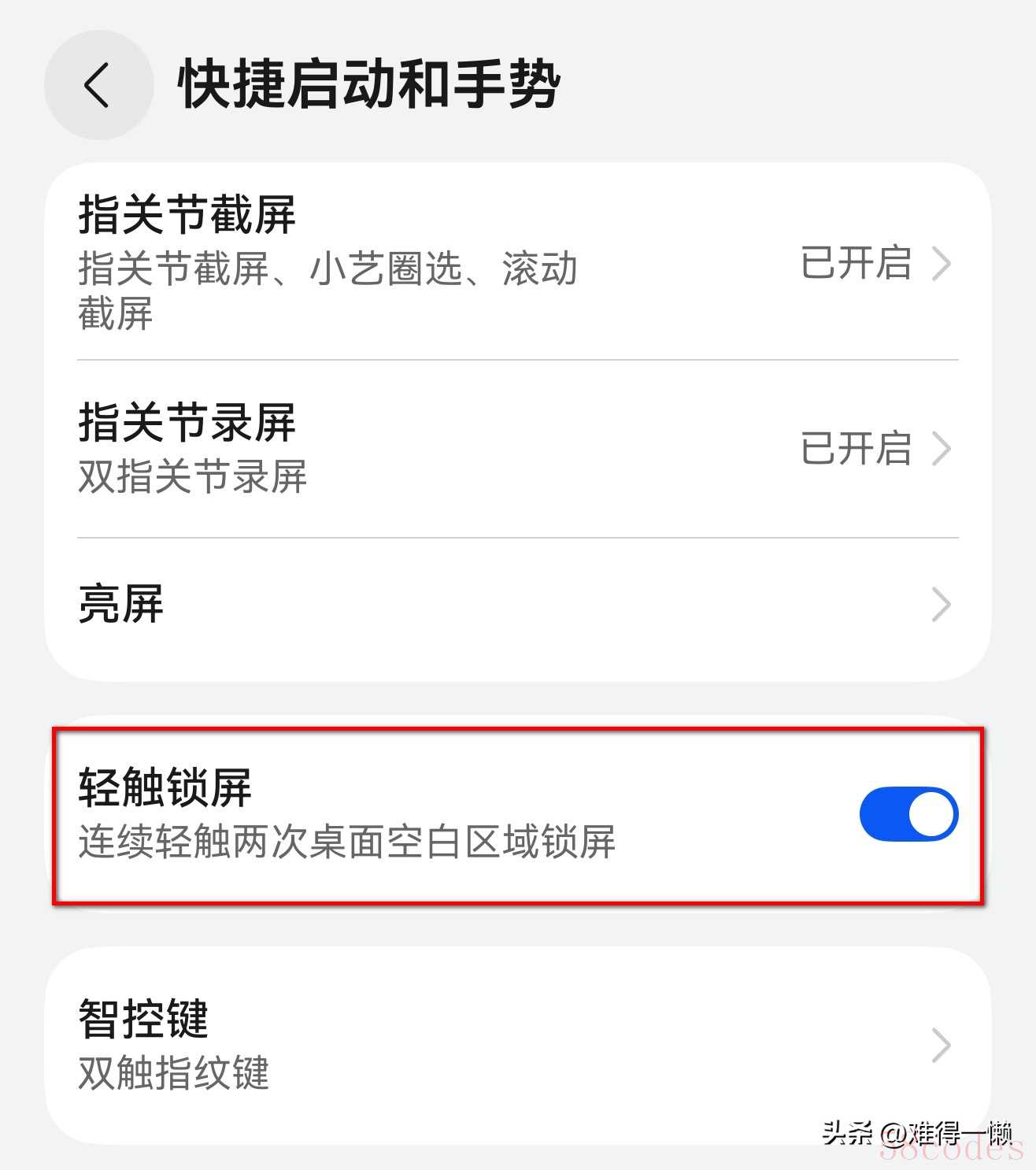 当我们不使用手机了会按一下电源键进行锁屏,或者让手机自动锁屏,还可以通过按手机桌面的一键锁屏快捷键进行锁屏。如果不想使用以上的锁屏方法,那么可以在快捷启动和手势设置里面找到轻触锁屏,开启之后,我们双击手机屏幕就可以锁屏。