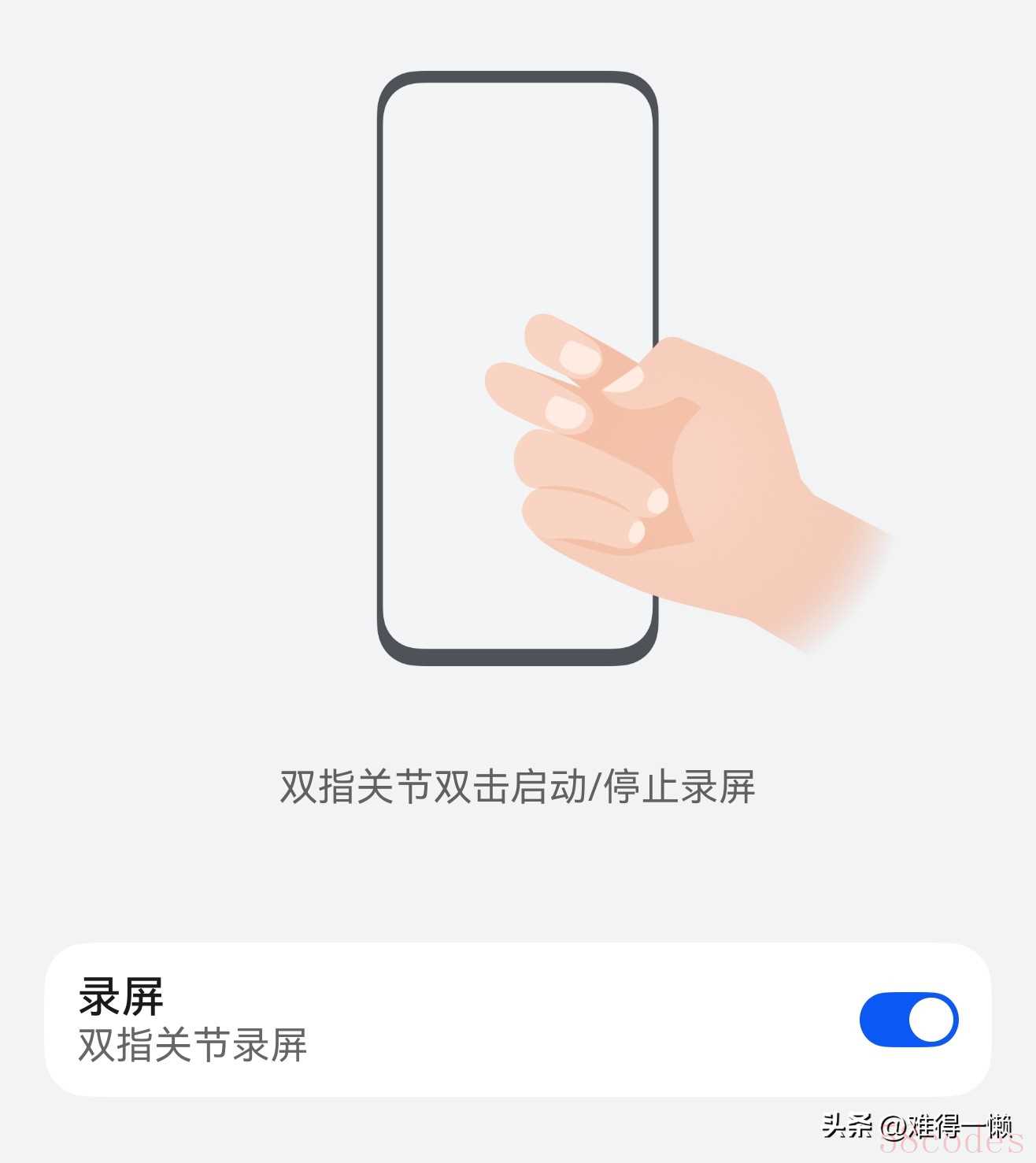 当我们使用双指关节在手机屏幕上面双击一下,这样就可以开启录屏功能,再次双击屏幕就可以结束录屏。同样,这个功能是在手机的快捷启动和手势里面进行设置的。