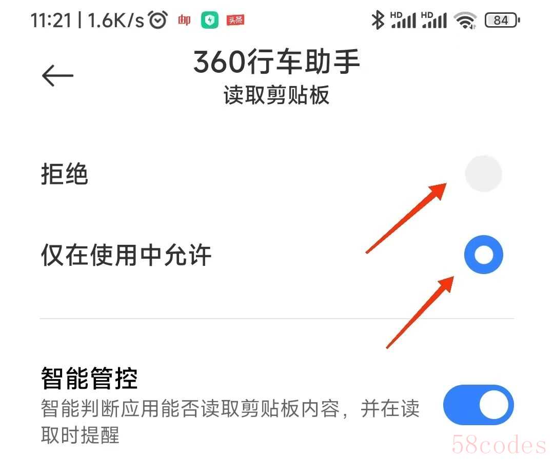 如果是打开了智能管控的选项,手机系统就会对应用软件的行为作出判断,并且在访问剪贴板时给出相应的提醒。