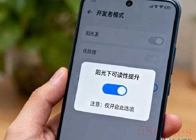 如果想更进一步,得进开发者选项。步骤是:设置→关于手机(或我的设备),连续点“版本号”或“基带版本”五到七次,系统会提示你已开启开发者模式。回到设置里会多出“开发者选项”,在里面搜索“阳光下可读性提升”或“强光下显示优化”,把开关打开就行。这里要提醒一句,开发者选项里东西很多,有些开关会影响性能或耗电,像“GPU渲染”“后台进程限制”这类别随便动。设置好需要的开关后,最好别乱点别的选项,避免不必要的麻烦。有的人会在改完后把开发者选项总开关关掉,防止误触,这个可以根据自己习惯决定。