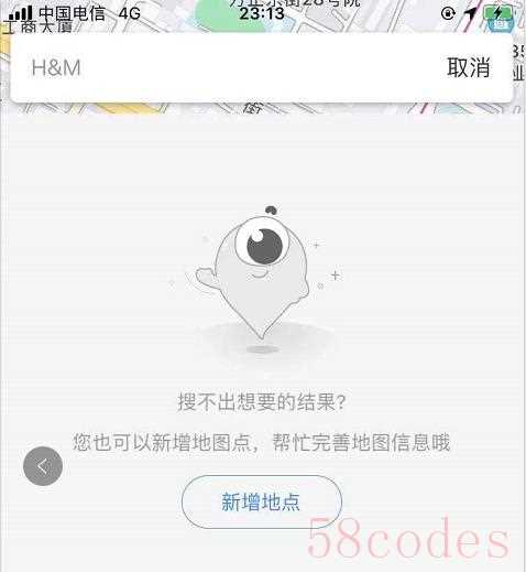 百度地图APP搜索HM显示,搜不到结果,搜索H&M也未显示HM相关门店位置。
