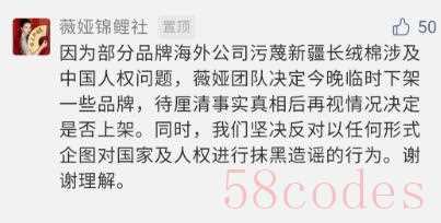 此外,与H&M有合作的艺人黄轩、宋茜、辣目洋子等也纷纷表示与H&M解除合作,主播薇娅下架涉及污蔑新疆棉品牌。