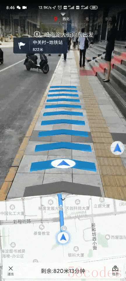 这是AR步行导航功能,在AR技术刚刚热起来的2016年就已经实现。