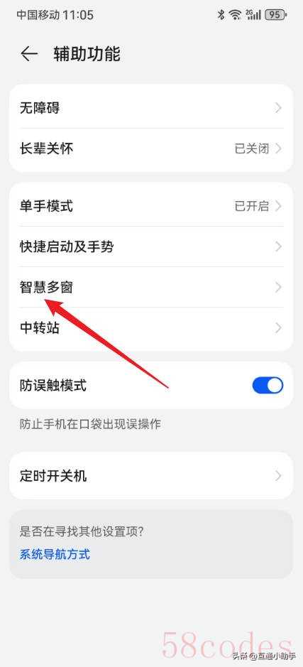 2、进入到辅助功能页面,点击“智慧多窗”。