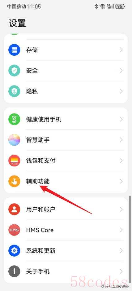 1、打开华为手机后,进入到设置页面,点击“辅助功能”。