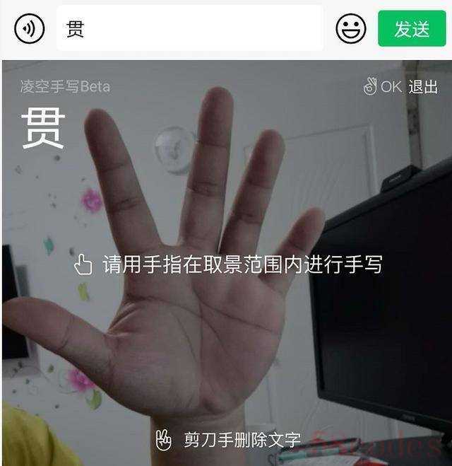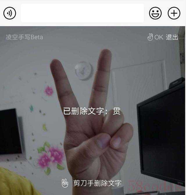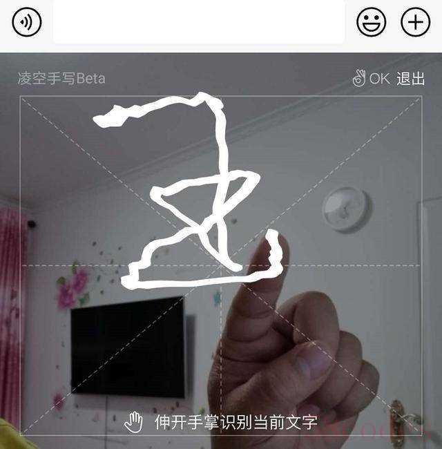 它的输入逻辑也蛮有趣的,在系统识别区域里,伸出手指笔划文字,输入完成后,张开手掌,这样就可以识别出所写的字了,当想要删除时,剪刀手即可删除文字,如果想退出凌空手写,再比个OK手势就可以了。因为凌空手写还属于Beta测试阶段,后续输入体验还会有进一步优化。