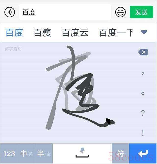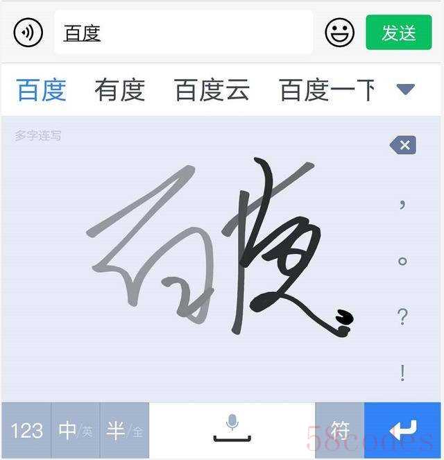 接下来,再说下叠写和连写,这两种输入形式也是百度输入法独有的输入形式,有了这种输入形式,也彻底改变了目前手写输入法输入慢的现状。多字叠写,我们可以在输入框里,连续手写不同的字,无需等待一个字一个字的识别,而是可以像拼音输入法那样,快速写出词组或句子,输入的速度大幅度提升,而多字连写也是同样的道理。