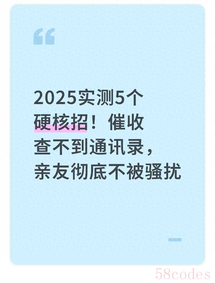 “逾期后最怕催收骚扰亲友”,这是很多人面临借贷还款压力时的共同顾虑。随着2025年民法典催收新规与《互联网金融 个人网络消费信贷 贷后催收风控指引》两大重磅文件落地,非法催收的生存空间被大幅压缩,但仍有部分机构试图钻空子获取通讯录信息。其实只要找对方法,就能从根源切断信息泄露渠道,既守住个人隐私,也不让亲友陷入骚扰困扰。经过实测验证,这5个硬核招数简单易操作,且完全符合最新政策要求,帮你在合规框架内守护生活安宁。
