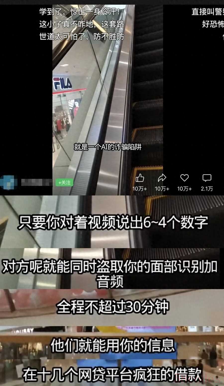 “只要你对着视频说出4-6个数字,对方就能同时盗取你的面部识别加音频,生成AI的活体模型,接着破解你的身份证、银行卡、手机号,再用木马拦截短信验证码。”