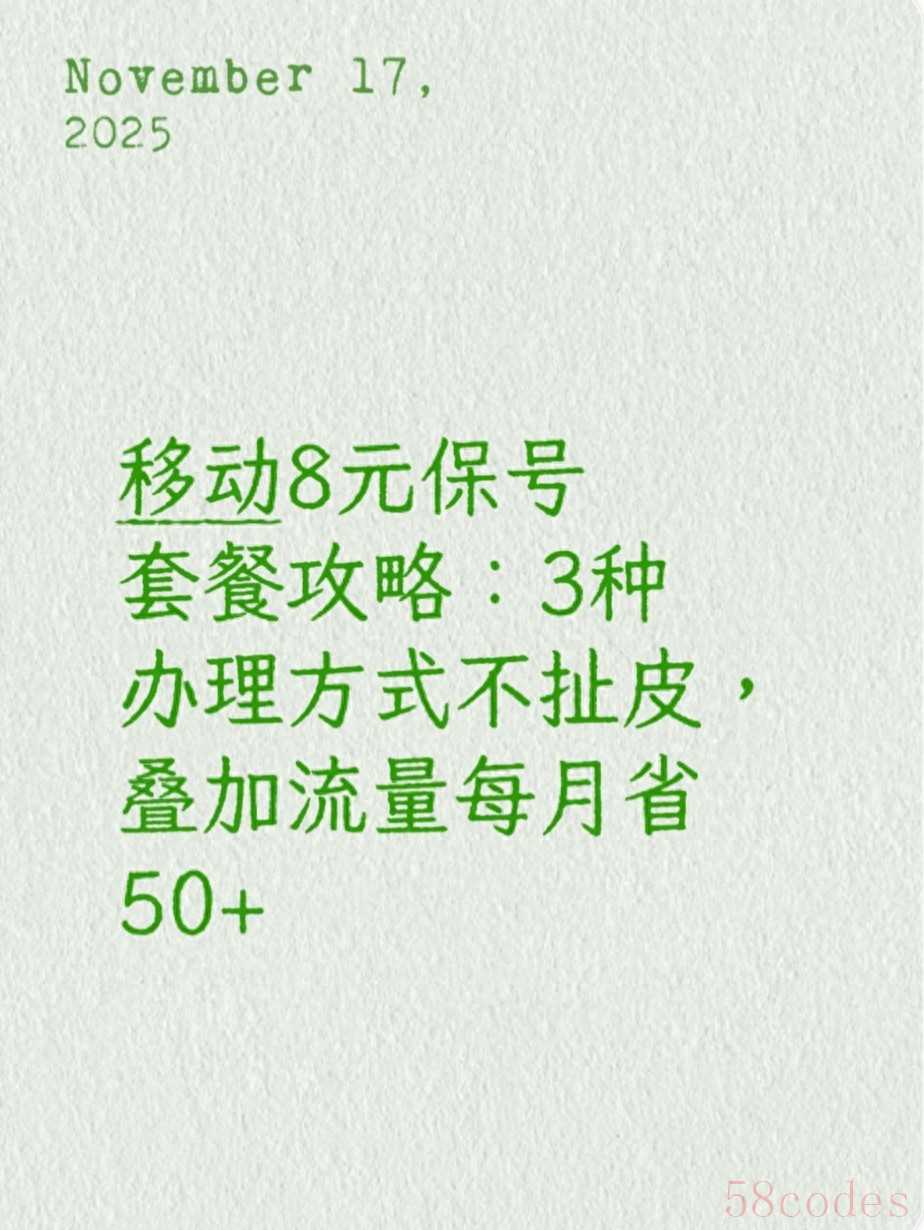 我们来详细解读一下“移动8元保号套餐”的攻略,特别是关于“3种办理方式不扯皮”和“叠加流量每月省50”的部分。