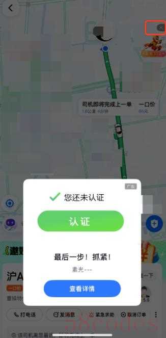 从用户提供的截图可以看到,在等待网约车的过程中,百度地图页面弹出一则广告,而关闭该广告的按键设置在界面右上角,与下方的广告主画面,有一定距离。
