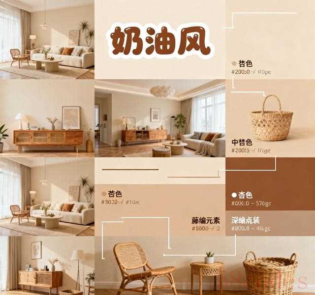 "选择:" 通常选择大面积使用的颜色,如墙面、大地毯、大型家具。选择一个相对中性或柔和的颜色,如米白、浅灰、燕麦色、低饱和度的莫兰迪色系。