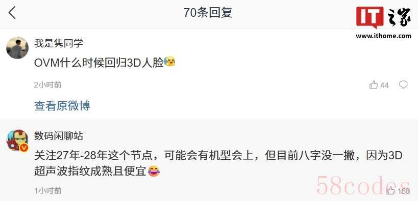 据IT之家此前报道,有消息称 OVM(OPPO、vivo、小米)在 27 年-28 年这个节点,可能会有机型会上,但目前八字没一撇,因为 3D 超声波指纹成熟且便宜。