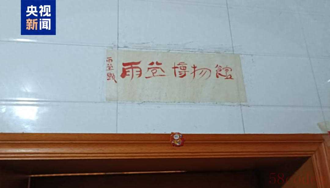 谢昭雨橦的卧室面积十几平方米,不大的空间里摆满了他的藏品,包括旧书籍、铜钱、陶器、瓷器等。谢昭雨橦给他的这个小小博物馆取名为“雨堂博物馆”,卧室门外还贴有他亲笔写下的“雨堂博物馆”门牌。