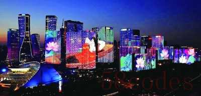 ②杭州钱江新城“夏”主题灯光秀 资料图片