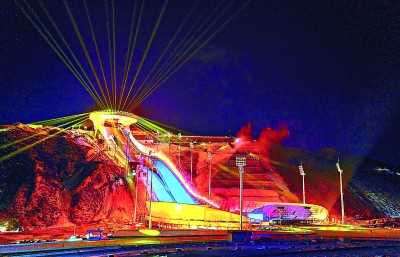 如国家跳台滑雪中心“雪如意”(图①),便呈现出智能系统驱动下的灯光公共艺术新形态。创作团队通过物联网与智能控制构建出统一的四维“智慧控制平台”,实现近万盏LED及投影的逐点调度与分层编排,使照明、舞台与景观在同一时间轴上联动呈现。系统采用红、绿、蓝三通道各256级灰度的精细色彩控制(可混合出千万种颜色)与复杂表面全色激光显示技术,高密度像素与多级灰度带来细腻的色彩过渡与1000平方米超大画面显示。实时环境传感与赛程联动,使色温、亮度与动态节奏可随赛事与天气的变化自动调整,既满足了国际赛事转播对光环境的高标准,又通过定向照明与能效管理降低了光污染与能耗。