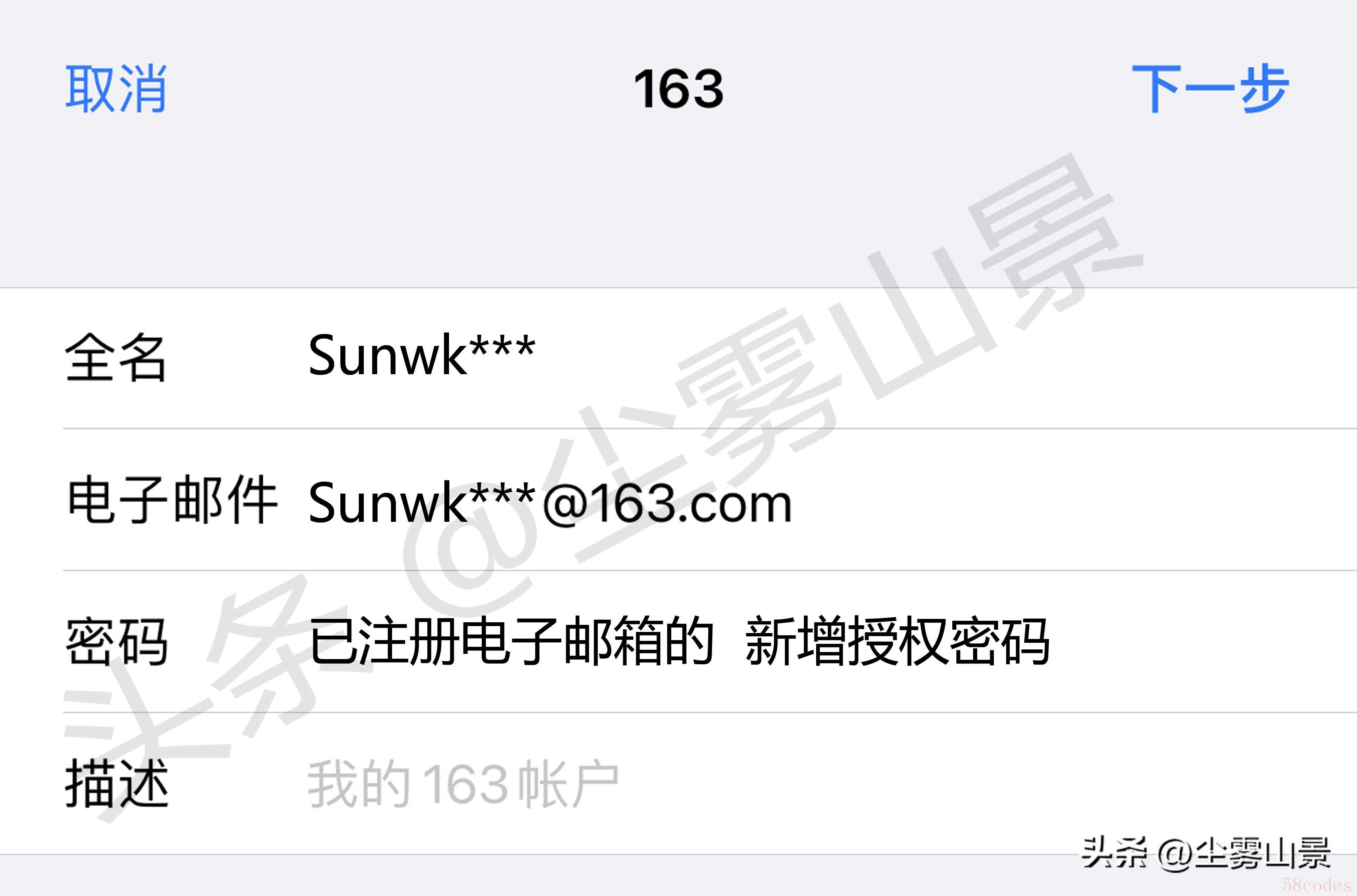 ⑸在图11,按提示输入:在电脑端已经注册的、电子邮箱地址(电子邮箱账户、电子邮件地址、用户名),及图6的“新增授权密码”生成的“专用密码”,点击“下一步”。